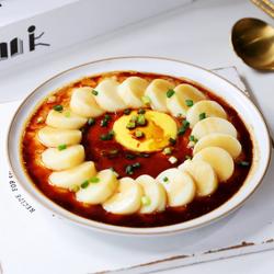3.Cut the eggs and tofu into thick slices and place them in a circle around the plate