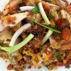 5.Use the oil used to fry the garlic Fry the crabs until golden brown, remove and set aside