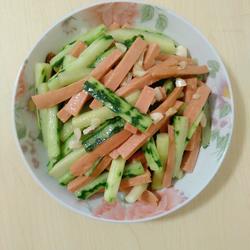 7. Stir-fry for a while and add ham Stir-fry the strips evenly