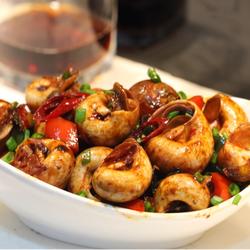 8.Add a small bowl of hot water and simmer for a minute or two to let the flavor of the snails infuse.