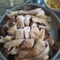 8. Boil the water, turn off the heat, add the chicken again and soak it for 30 minutes, then add it again Soak in a new basin of ice water for 15 minutes