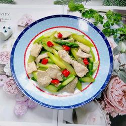 10. Put it on the plate and take a picture of the finished product.It is delicious and nutritious.The fried asparagus and meat slices are finished.