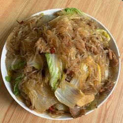 5. Stir-fry the meat with cabbage until soft, add light soy sauce, appropriate amount of water, and then add vermicelli