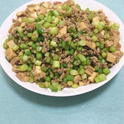 6. Heat the oil and stir-fry the minced onion and ginger until fragrant.Stir-fry the minced meat until it changes color.Add a spoonful of light soy sauce, half a spoonful of dark soy sauce, add dried sesame seeds and stir-fry until fragrant, then add garlic moss and stir-fry.Stir-fry for 20 seconds, add salt, white pepper, millet pepper to increase the spiciness, pour in starch water, stir-fry, and remove from the pan.