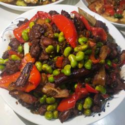 6. Stir for a while, stir-fry until fragrant, add beer, bring to a boil over high heat, then turn to medium heat and simmer.Cook until the beer is dry