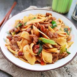 6. Add beef and stir-fry quickly until it changes color and is cooked through, then scoop out immediately.