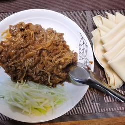 The traditional shredded pork with Beijing sauce* is battered with egg white and fried twice, first frying the meat and then frying the sauce.The oil is too much and unhealthy, so I changed it to only use cornstarch to batter, and cook it once, and then fry it in the sauce.Adding enoki mushrooms to the shredded meat can neutralize the fat.
