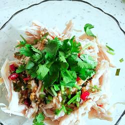 5. Drizzle the torn chicken breasts Put some coriander on the meat and finish