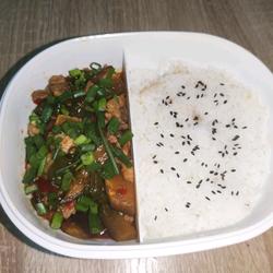 11.Pour the lunch box into the lunch box, sprinkle with chopped green onion, and call it a day! A super filling bento of minced meat and eggplant in clay pot is ready!