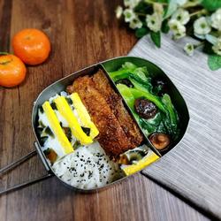 9. After everything is done, spread the steamed rice on the bottom layer and arrange the dishes , the bento filled with love is ready.A colleague looked at the picture and said one box was not enough, so I asked for another box, haha, no problem, enough!