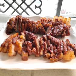 12.Cut and plate and then pour it into the rice cooker The barbecued pork sauce is fat but not greasy, and the delicious honey-glazed barbecued pork is ready.