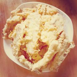 4.After the oil is hot, handle it one by one Wrap the hairtail segments in batter and put them in