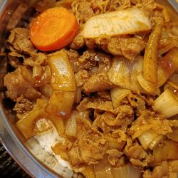 7.Put in Yoshinoya’s exclusive secret recipe and heat over medium heat for 5 minutes