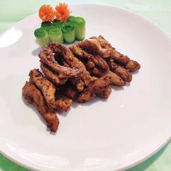 5.Before drying the pot, mix it well Sprinkle in the ingredients (mix cumin seeds, Sichuan pepper powder, and chili powder), stir-fry evenly so that each chicken breast is coated with the ingredients, and it is ready to serve.