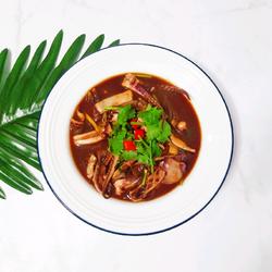 4. Pour in the coriander and Chaotian pepper, then add 10ml of water and a small amount of starch to thicken it and pour in In the pot, wait for the soup to thicken and reduce its juices before serving it out.