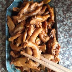 3.Put in the ginger slices, pour an appropriate amount of cooking wine and salt, and add water to cover the chicken feet