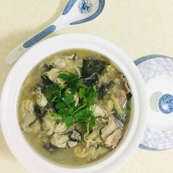 10.Finally add the oysters, simmer for 3 minutes, sprinkle with MSG and coriander, a pot of extremely delicious The sauerkraut and sea oyster pot is ready!