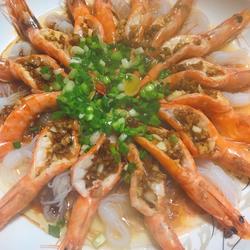 6. Arrange shrimps on the vermicelli and put on Fried minced garlic and ginger to remove the smell! After the water boils, put it in the pot and steam it for 10 minutes! Because there are seasonings added to the minced garlic, just pour a little steamed fish soy sauce after it is out of the pot!