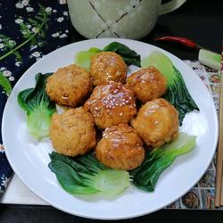 12. Arrange on a plate and garnish with blanched green vegetables, sprinkle with white sesame seeds, and a delicious sweet and sour meatball is complete.