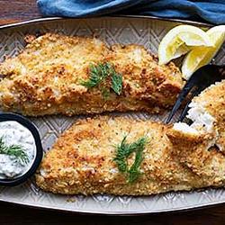 5. Place the fried fillets on a baking sheet lined with parchment paper and Fry the rest of the fish fillets.Bake in preheated oven until cooked through, 10-12 minutes.