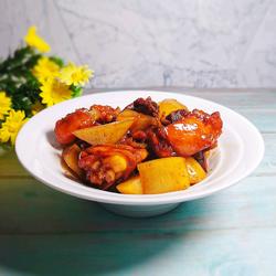 7. After the potatoes are dehydrated, pour them into the chicken nuggets, add 1 tablespoon of sugar to taste, and stir Stir evenly, reduce to medium-low heat and simmer for 5 minutes, then serve.