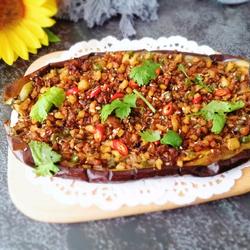 1.Wash and wipe the eggplant Dry the water, cover the baking sheet with tin foil, grease the eggplant with oil, put it in the preheated oven, bake at 200 degrees for 20 minutes