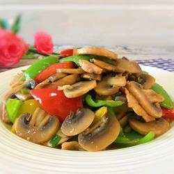 8. Pour in the mushrooms and colored peppers and stir-fry quickly.