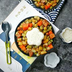 7. Add the chopped potatoes, carrots and kidney beans and stir-fry Evenly.