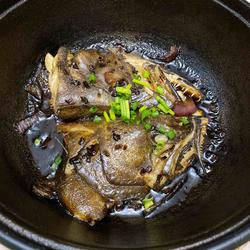 7.Put the fish head on top of the garlic and pour a little more oil to make it more fragrant