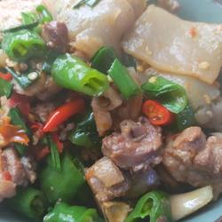 3. Cut all the peppers, ginger, garlic, and garlic sprouts