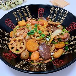 1. Peel and slice lotus root, sweet potato, and shiitake mushrooms Wash and slice, remove the roots of enoki mushrooms, wash and set aside