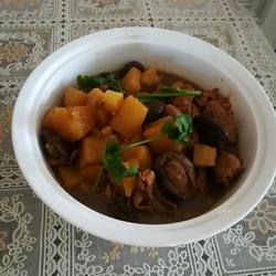11.Add the soaked dried shiitake mushrooms and the water in which the shiitake mushrooms were soaked, cover and simmer over high heat for 25 minute.