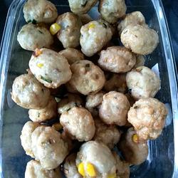 5.Make balls.I use a stainless steel spoon to take an appropriate amount of filling, put it in the palm of my hand, then use the spoon to gently cover the filling, then use the spoon to rotate and knead the filling to form balls.This way the balls will be firmer.