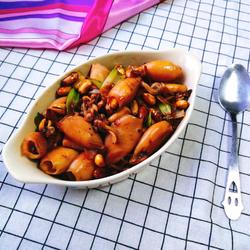 22. Pour in the prepared sauce and stir-fry quickly until the squid is flavorful and the juice is reduced.