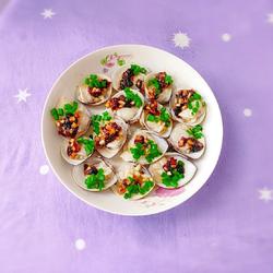 12.Pour the fragrant garlic sauce onto the clam meat with a spoon