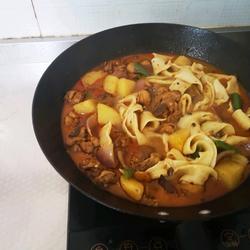 8.Put the lid on and simmer over medium-low heat for about 40 minutes.Add the potatoes