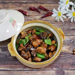 10.When the chicken is tender and the soup is thick, add green pepper and stir-fry evenly.
