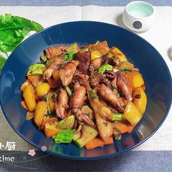 Pen tube squid ( 250g ) | Yellow pepper ( 1/2 pieces ) | Carrot ( 1/2 pieces ) | Dry cucumber ( 1 root ) |