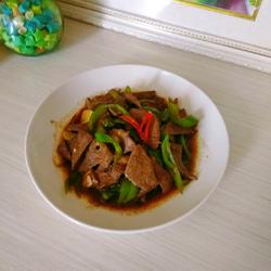 6.Add green pepper and stir-fry, add salt, light soy sauce and oyster sauce and stir-fry evenly.