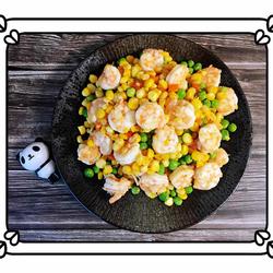 7.Add salt to taste, add a little water and stir-fry for a minute or two to fully absorb the ingredients.Before serving, add chicken essence and water starch to thicken the sauce.Beautiful and nutritious shrimp and corn are ready.