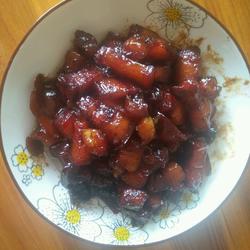 3. Add rock sugar to the remaining oil in the pot and stir-fry until the sugar color turns white.