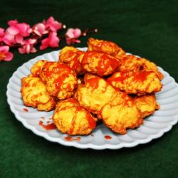20. Control the oil, remove it, put it into a plate, and squeeze on a layer of sweet and sour sauce..You don’t need to use it, it’s ok to eat it directly, it’s up to your preference.
