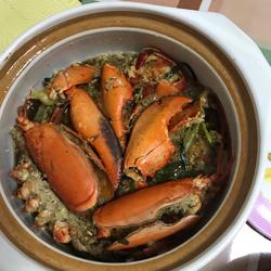 3. Pour oil into the casserole, sauté the onion, ginger and garlic, then add the lobster and stir-fry until fragrant.Add cooking wine, light soy sauce, and water.