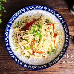1.Wash the lean pork, cut into shreds, and put into a bowl