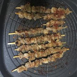 6. Sprinkle cumin and chili powder on both sides of the barbecue skewers, and then brush evenly Add cooking oil.Sprinkle a little cumin and chili powder before serving, and finally sprinkle with an appropriate amount of salt.