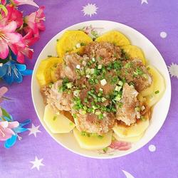 5.Put the potatoes and sweet potatoes on the plate and sprinkle in a little salt