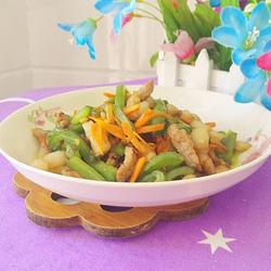 17. Stir-fried meat with carrots and green peppers is ready to serve~