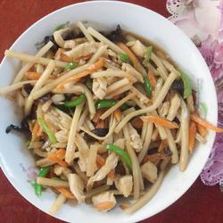 1. Prepare the ingredients: green pepper, radish, fungus and bamboo shoots