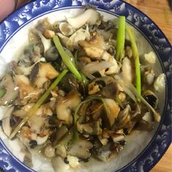 3.Put the shredded green onion, minced garlic, oil and extremely fresh flavor on the conch.