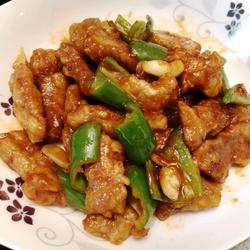 4. Stir-fried sauce.Leave an appropriate amount of oil, add sugar, tomato paste, vinegar and salt.After two minutes add the fried meat.Stir-fry and coat with sauce, add green pepper, a small amount of ginger and garlic to enhance the flavor